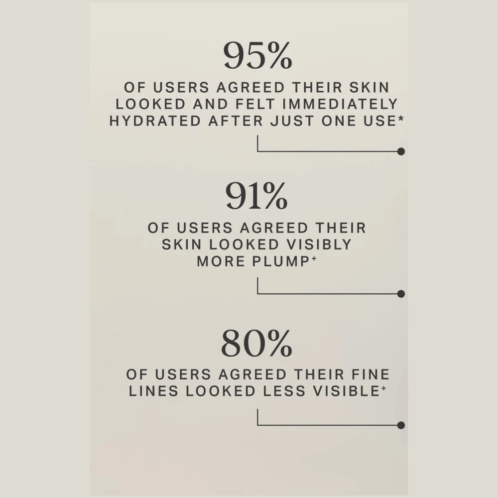 A luxurious water-based formula that provides intense hydration to last up to 5 days for an instantly plumper, bouncier-looking complexion that lasts.