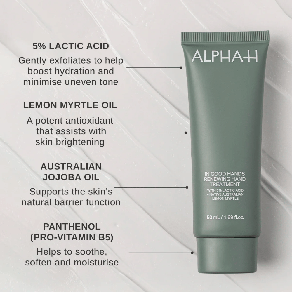 What does it do? More than your average hand cream, In Good Hands Renewing Hand Treatment gently exfoliates to remove rough, dry skin, while accelerating cell renewal to minimize the signs of aging. This skincare-meets-hand cream formula leaves hands looking and feeling smooth, soft and supple.
