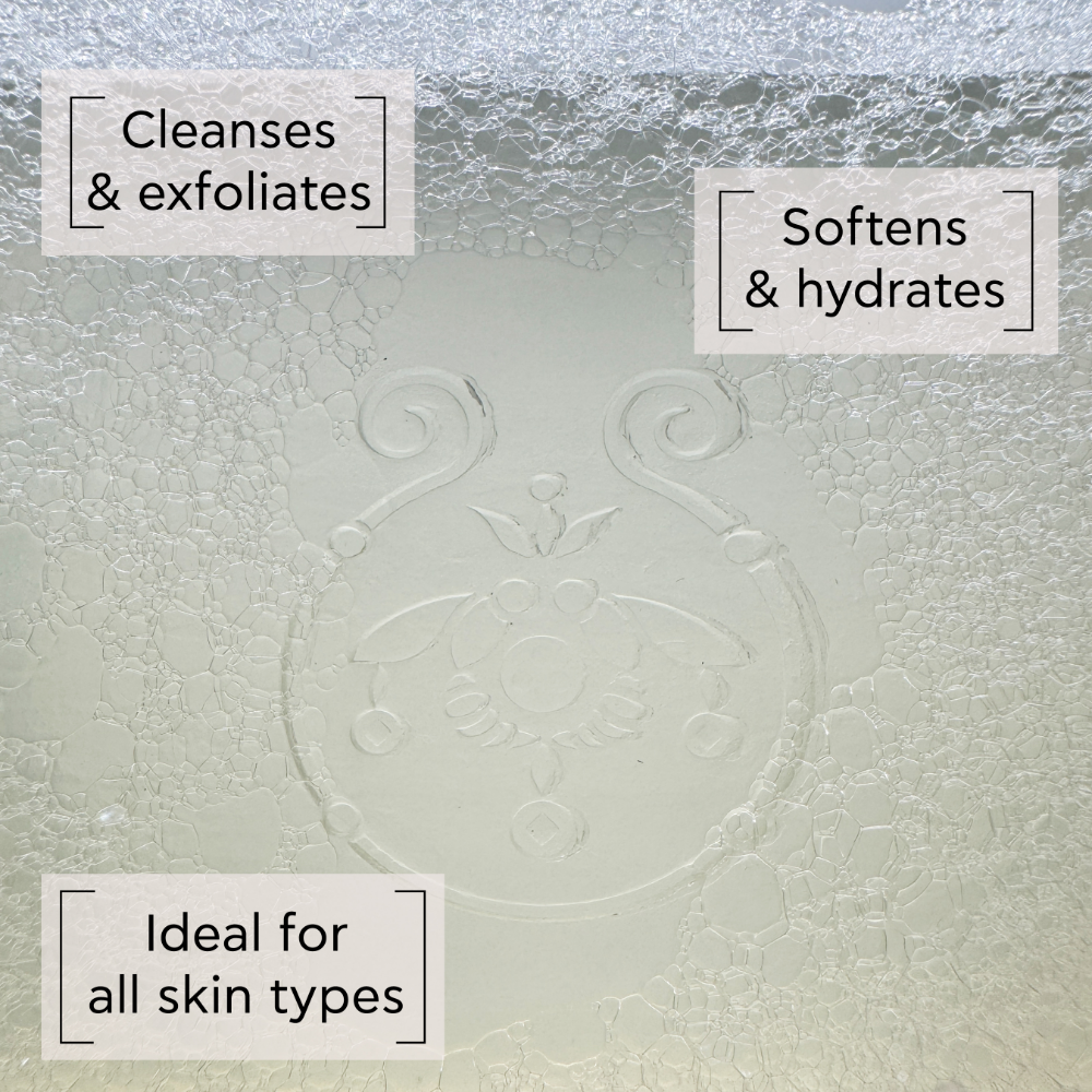 A modern, smooth and transparent soap that cleanses while maintaining the skin's natural hydration and that offers a sense of well-being and relaxation thanks to its unique scent.