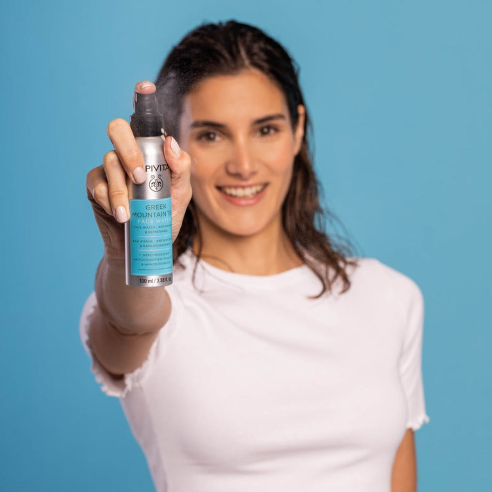 Greek Mountain Tea Infused Face Water from APIVITA organic crops on Mt Olympus, rejuvenates, protects from oxidative stress and keeps skin healthy.
