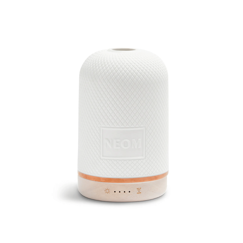 Simply fill the tank with water, being careful not to exceed the maximum level, then add 5-10 drops of your chosen NEOM Wellbeing Essential Oil Blend. With the touch of a button, your Pod will instantly release a heatless, fine mist of scented vapour into the atmosphere to stimulate your senses and boost your wellbeing. Choose from a range of carefully curated settings to select your time, light and breathing mode.