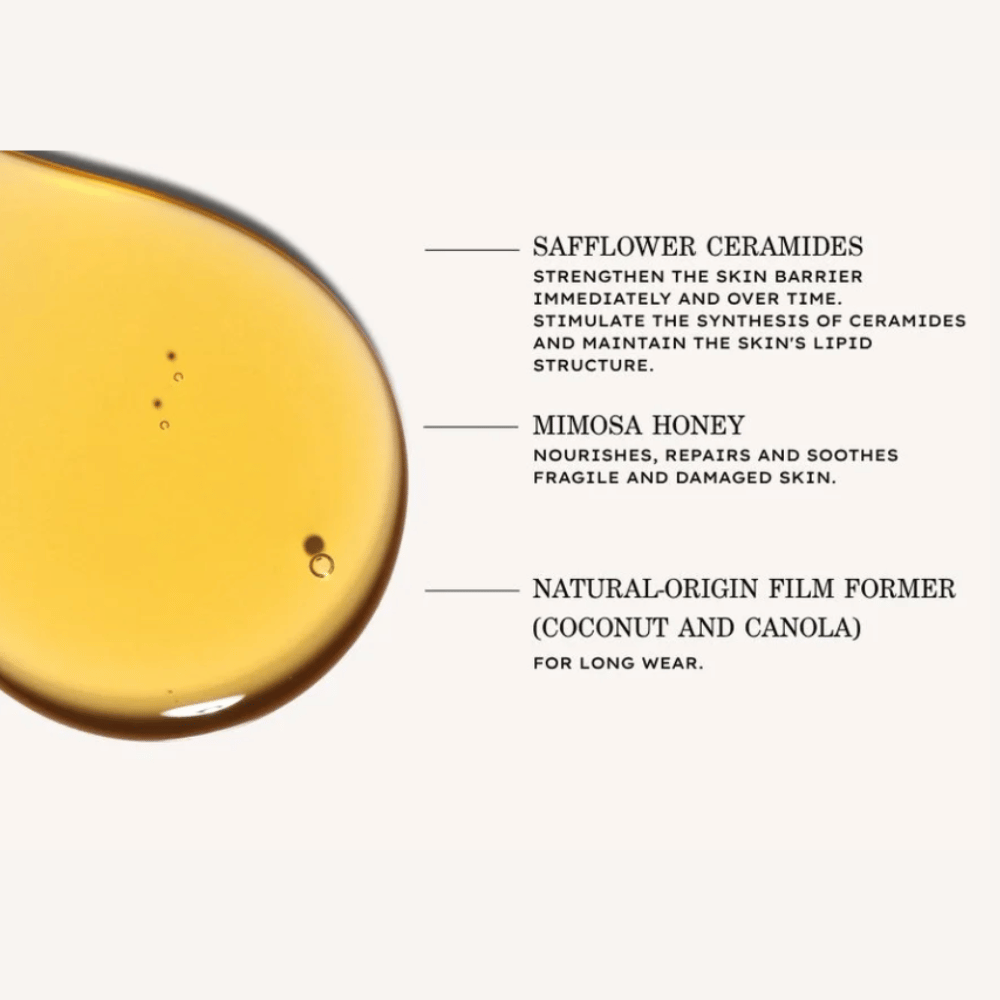INGREDIENTS: HYDROGENATED DIMER DILINOLEYL/DIMETHYLCARBONATE COPOLYMER ● POLYGLYCERYL-3 DIISOSTEARATE ● SQUALANE ● OCTYLDODECANOL ● HELIANTHUS ANNUUS (SUNFLOWER) SEED OIL ● CARTHAMUS TINCTORIUS (SAFFLOWER) SEED OIL ● SAFFLOWER OIL/PALM OIL AMINOPROPANEDIOL ESTERS ● HONEY ● VEGETABLE OIL ● CERAMIDE NP ● PARFUM (FRAGRANCE) ● TOCOPHERYL ACETATE EXTRACT ● GERANYL ACETATE ● VANILLIN ● LINALOOL ● CI 75120 (ANNATTO) ● ASCORBYL PALMITATE ● TOCOPHEROL*